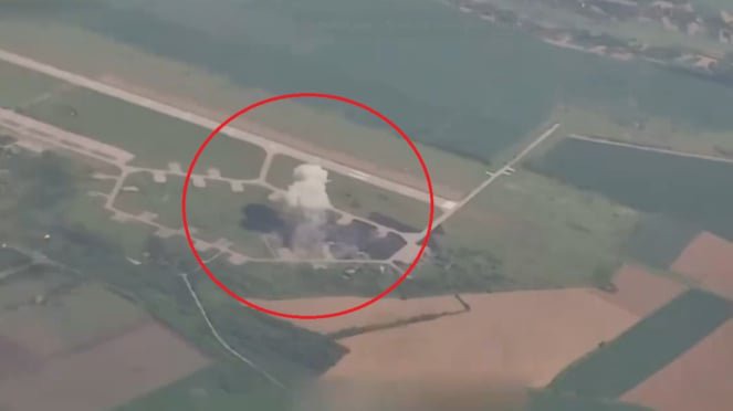 Sebuah rekaman yang dirilis militer Rusia beredar luas di akun media sosial Twitter , menunjukkan detik-detik serangan mematikan di Pangkalan Udara Myrhorod.